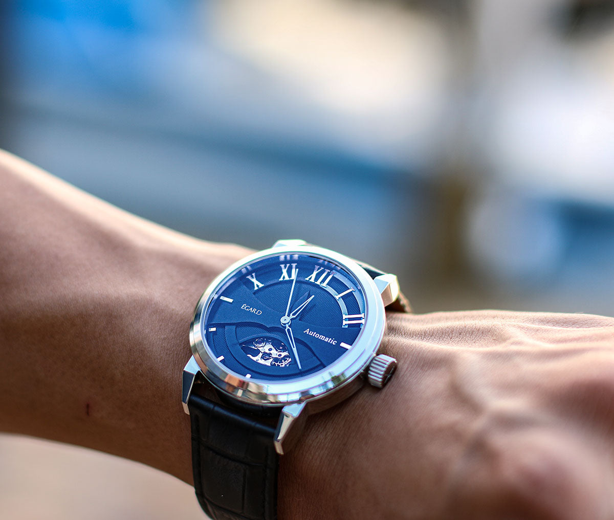 Movement info: Automatic Skeletonized movement with 21 Jewels, 42 hour power reserve